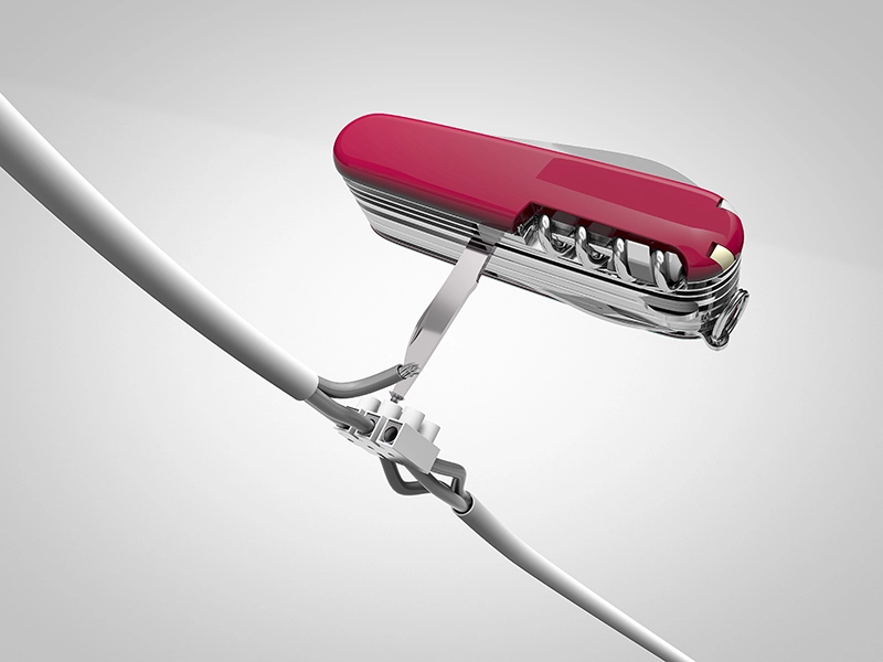 Oft übersehen, aber äußerst praktisch. Der Mehrzweckhaken ist geeignet zum Tragen von Gegenständen wie Einkaufstaschen oder zum Festhalten von Schnüren und Drähten. Es ist ein unscheinbares, aber vielseitiges Werkzeug, das in vielen alltäglichen Situationen nützlich sein kann.